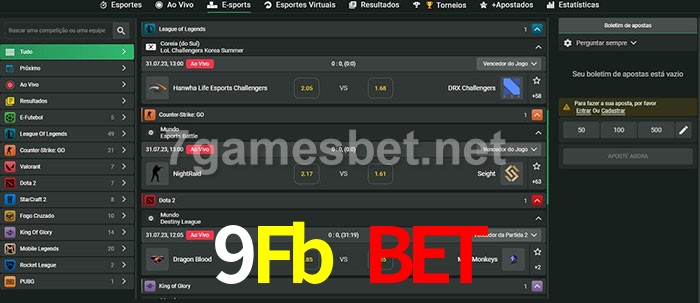 O 9Fb Bet oferece uma grande seleção de opções de apostas em e-sports com probabilidades competitivas